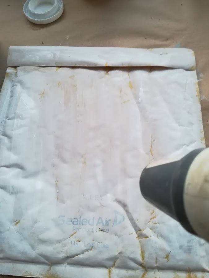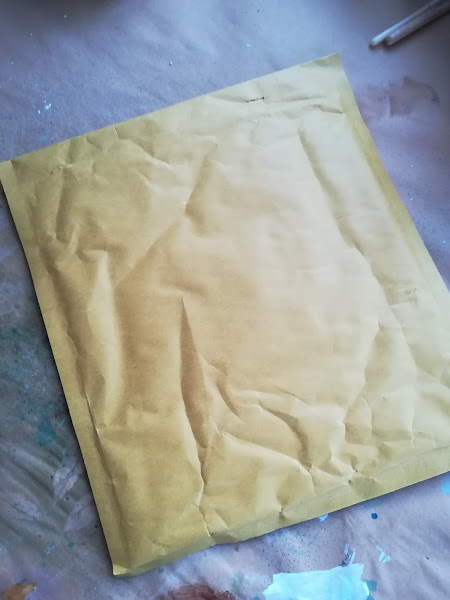 La segunda prueba con estas pastas, ha sido sobre papel y se me ocurrió probar a "alterar" como dicen en Mix Media, un sobre de estos de burbujas, de los de toda la vida.