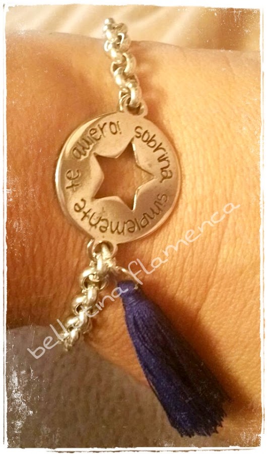 Pulsera con búho y lolita graduada y medallas formando el nombre.