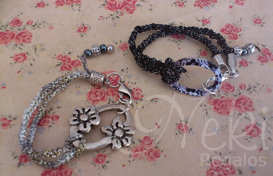Pulseras de Lana con hilo de Plata y decoración en Zamak