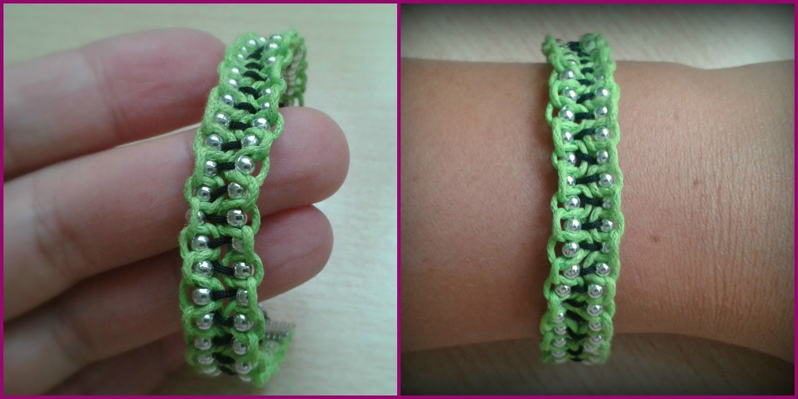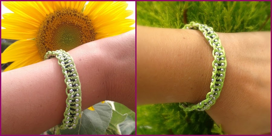 También hice otra pulsera, por probar, uniendo dos pulseritas de macramé, y así ha quedado: