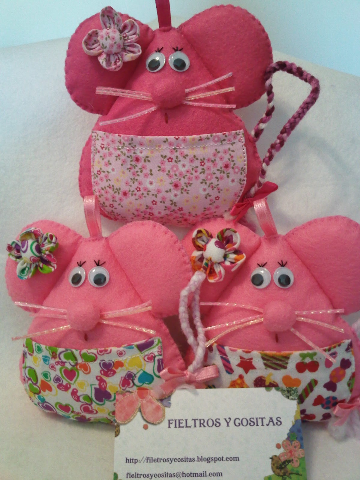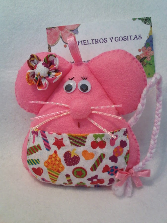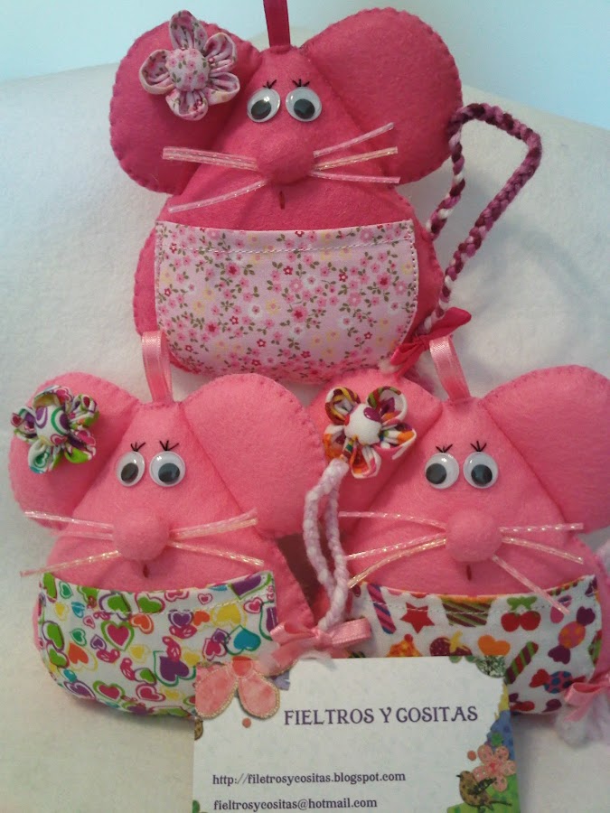 Estas tres nuevas ratoncitas guardadientes de fieltro están ya preparadas para salir de viaje a casa del Sr Perez y servirle de ayudantes ... os gustan las nuevas telitas de chuches y corazoncitos????