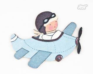 Silueta de madera niño pilotando avión