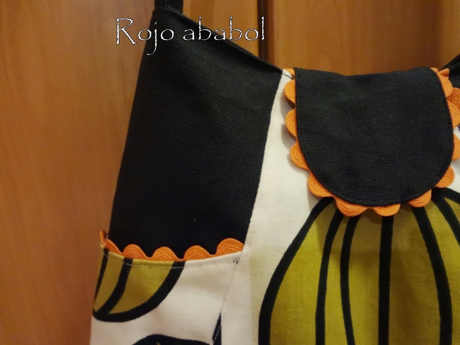 Otra cosa que añadí fue el zigzag en el bolsillo lateral. La solapa ya la decoré en este otro bolso y me gustó, así que repetí. El snap escondido y sujeto solo en el lado de dentro de la solapa. Tengo fotos de la colocación del zigzag del bolsillo lateral, queréis tutorial? Serviría para la solapa también :-)