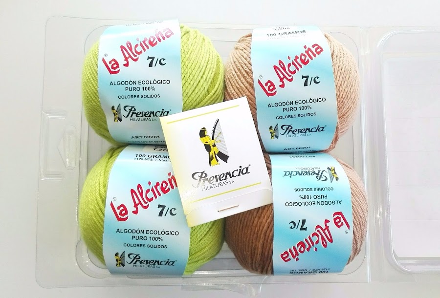 Dentro del paquete venían 4 ovillos de hilo de algodón ecológico La Alcireña. Tengo que decirte que el tacto es súper suave y se me hizo muy agradable trabajar con él.