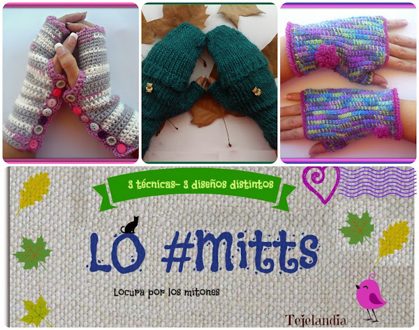 Lo#mitts es para todas aquellas que se vuelven locas con los mitones o guantes sin dedos y para las que quieren aprender nuevas técnicas de tricotar. En nuestra "Locura por los mitones " hemos diseñado 3 mitones distintos y originales , cada uno de ellos creado siguiendo una técnica tejeril: ganchillo, punto y ganchillo tunecino.