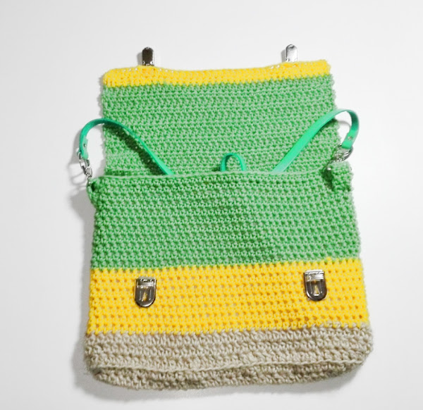 En este caso se trata de un nuevo modelo de bolso de ganchillo y con la pequeña diferencia de que este tiene más color.