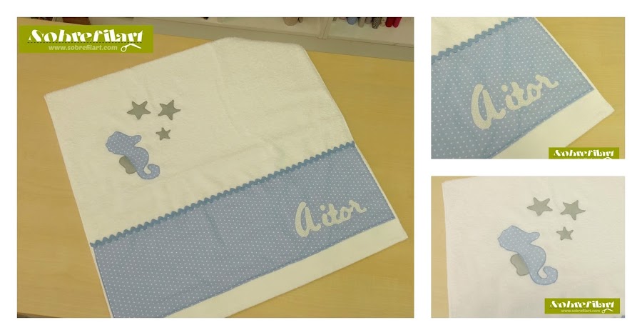 Y como en todos nuestros productos, realizamos la toalla con el dibujo y la tela que más te guste. Si tú también quieres la tuya escríbenos a sobrefilart@gmail.com y te informaremos sin ningún compromiso