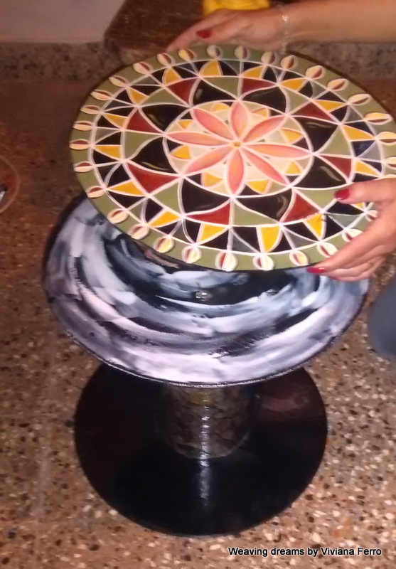 Finalmente! Proyecto terminado! Espero que les guste tanto como a mí el resultado final, esta mesita ratona con mandala hecha totalmente con materiales reciclados.