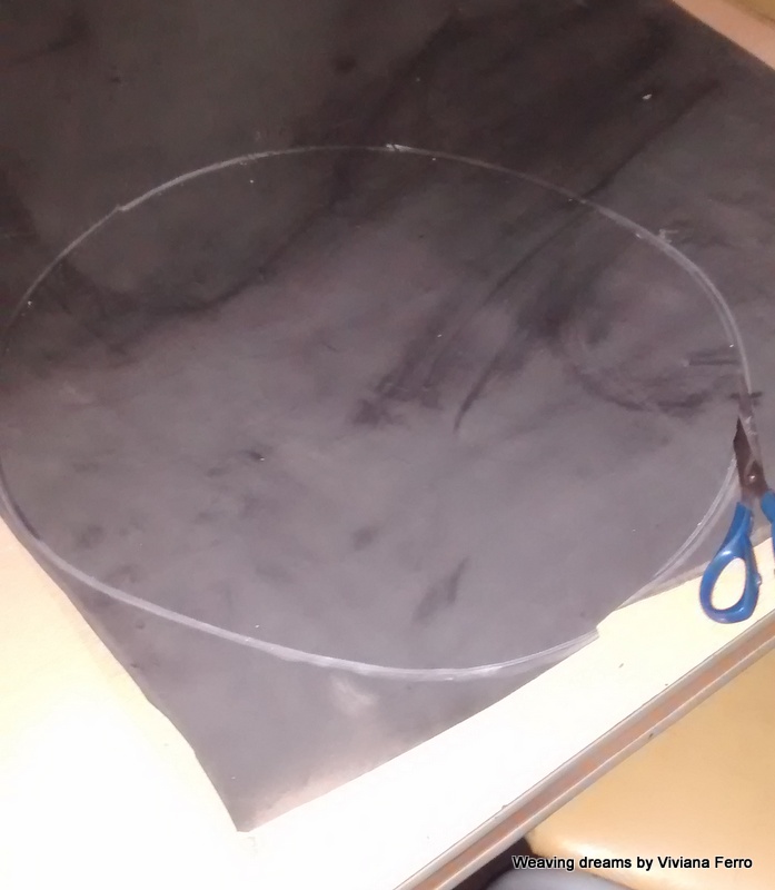 Primero marqué y corté una circunferencia del diámetro de la base en una plancha de goma, pincelé con cola de carpintero ambas circunferencias y procedí al pegado. El objetivo buscado era, además de proteger la base de la mesa, dotarla de una superficie antideslizante.