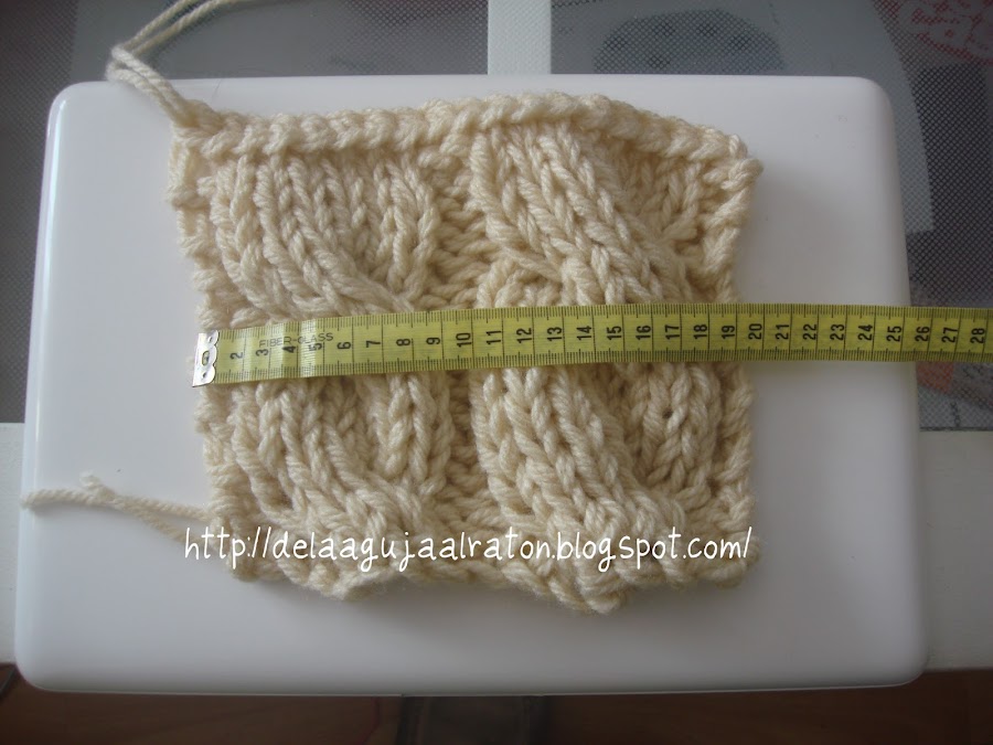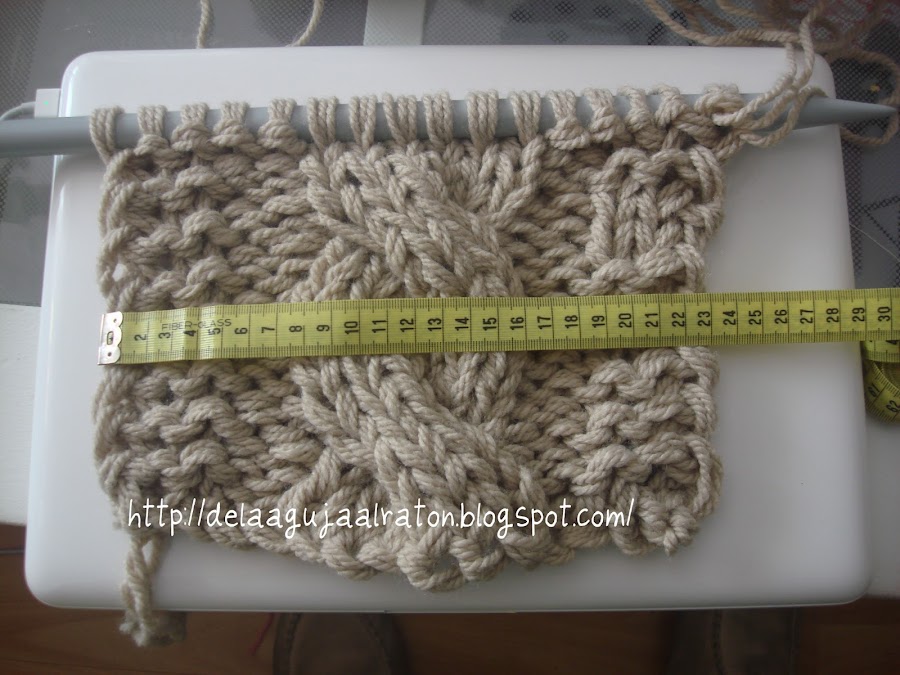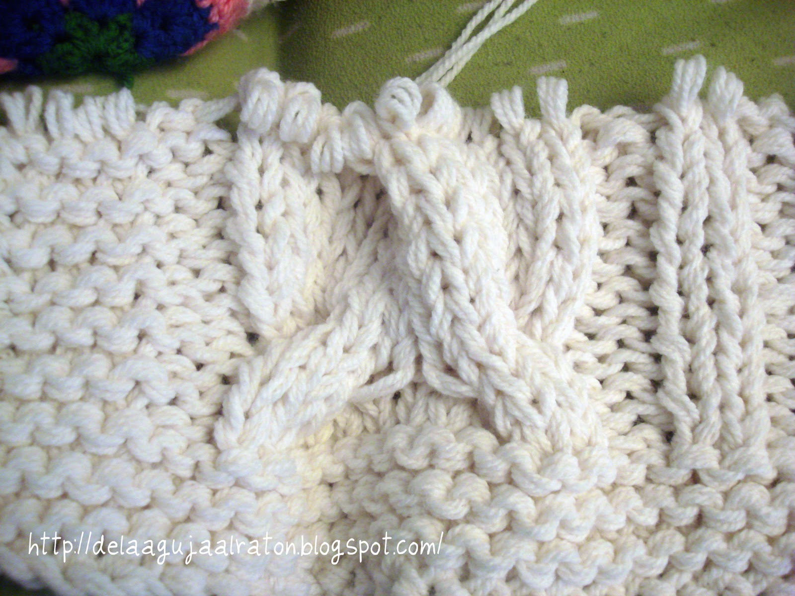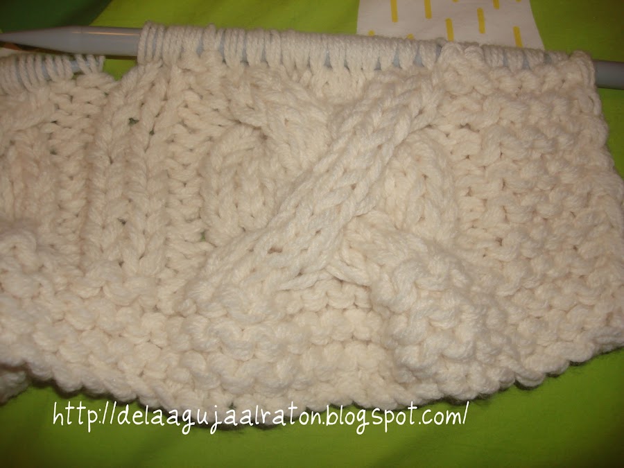 En base a la muestra calcule los puntos, saque el patrón de las trenzas y empecé, un consejo no empecéis nada nuevo cuando estéis griposas y con décimas de fiebre porque os pasará lo que a mi. Cuando se me estaban casi acabando las primeras madejas, me di cuenta que las trenzas quedaban muy juntas, es decir, que tenia que hacer mas vueltas entre los cruces. Ni me di cuenta que las trenzas no quedaban como en la manta original.