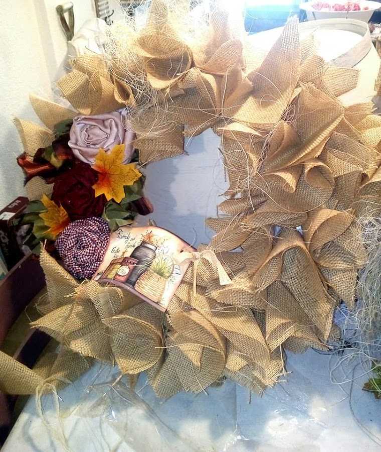 TALLER GUIRNALDA DE ARPILLERA Y FLORES DE TELA.