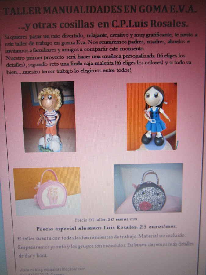 llevo días intentando poner una entrada en mi blog donde os comento que se ha abierto un taller de manualidades en el Colegio Luis Rosales de Granada.