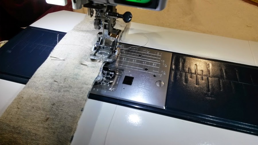 Una vez cosido prepararemos un bies de aprox. 5cm, y remataremos con el ambos costados para que no se vean las costuras.