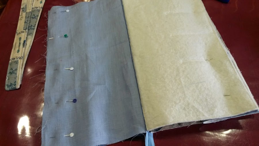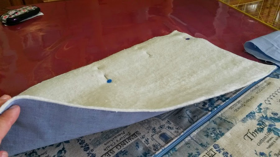 PASO 2: Pegamos entretela y guata a los exteriores.