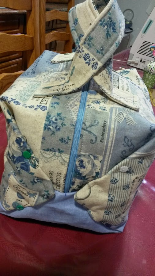 Si os fijais, la cremallera sobresale por los lados. Prefiero en las labores que llevan cremallera que ésta sea más grande que la labor y cortar lo que sobre que comparla justa y que luego queden "chapuzas" en los remates.