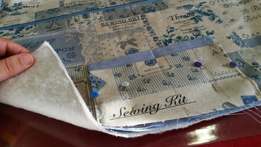 Una vez pegada la entretela, cosemos la guata muy al ras de la tela.