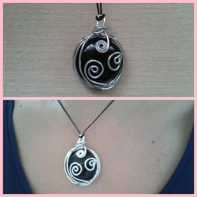 Colgante cristal negro y alambre plata
