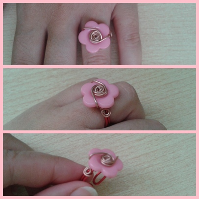 Ajustable con botón rosa y alambre rojo y cobre.