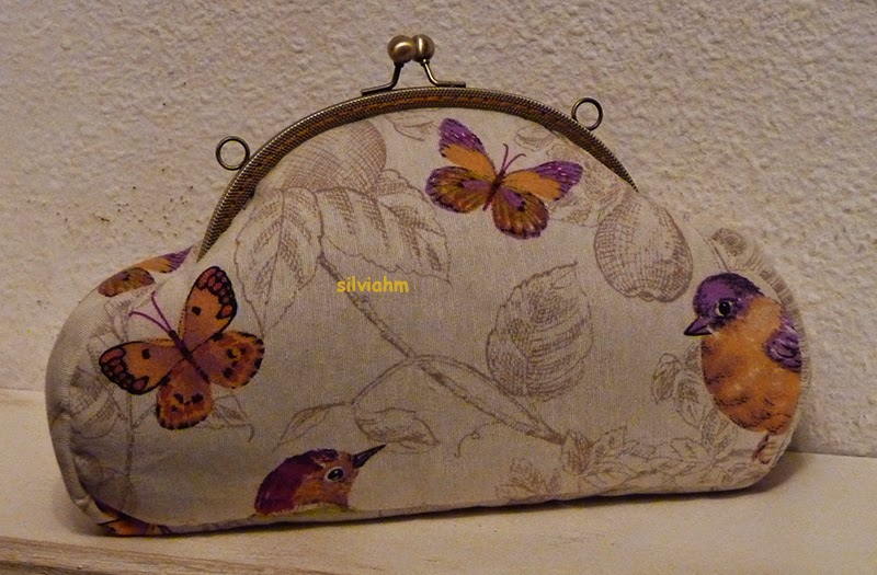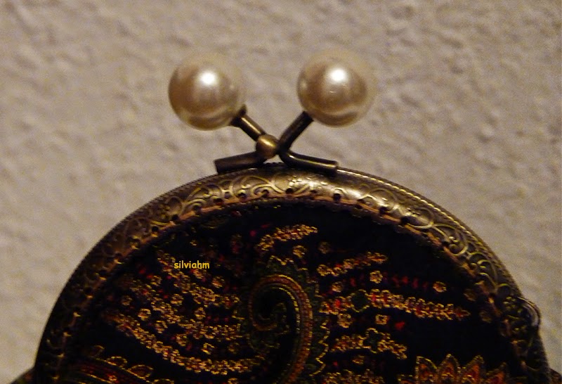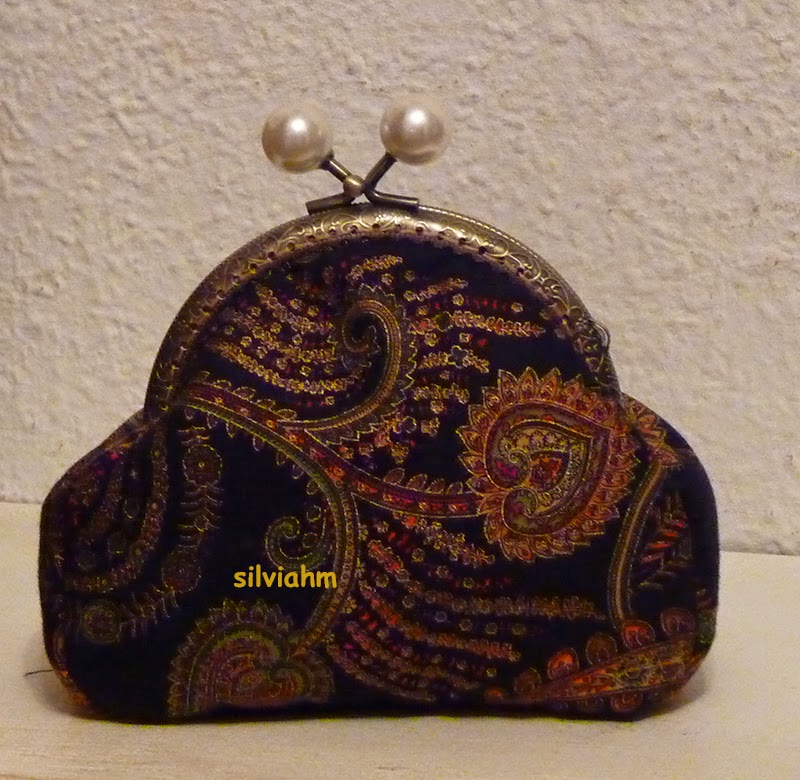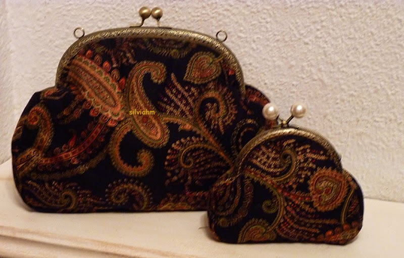 Y éstos son los que hice yo en los distintos talleres; en el último decidí hacer un monedero en vez de bolso.Me había quedado un trozo de tela de cuando hice éste negro y dorado, una tela preciosa de esas que se guardan mucho tiempo porque da pena usarlas y a la que la foto no hace justicia, así que ya tengo el conjunto