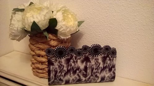 Uno de los proyectos que más desarrollamos en talleres es el bolso "clutch", realizados en distintos tejidos: Arpillera, tapicería, sedas....Todos quedan preciosos. Es un taller fde gtres horas al final del cual nos vamos tan vcontentas con nurestro clutch bajo el brazo. Este es el ultimo que he entregado, divino, en arpillera y con encaje de guipur que se prolonga en el interior.