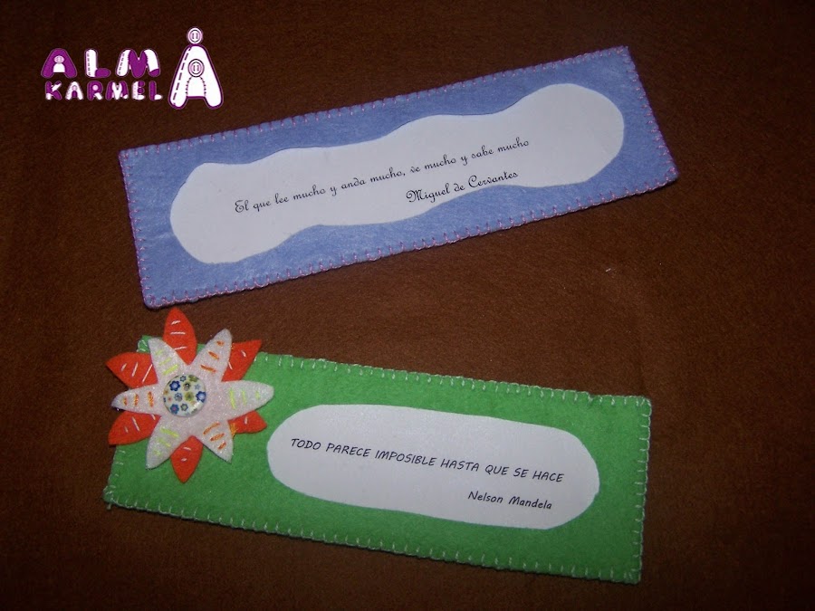 Y para este propósito os presento unos nuevos marcapáginas, en esta ocasión con "mensaje", he elegido alguna cita que me gustaba, para plasmarla y verla todos los días, y este ha sido el resultado
