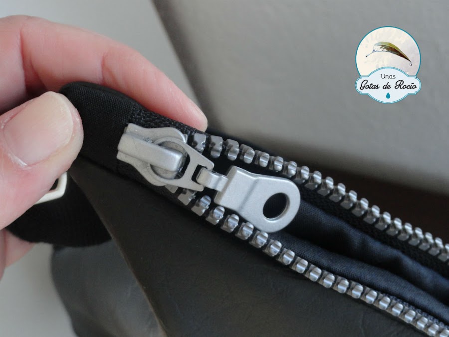 Aquí se ve la cremallera exterior y cómo el bolso cada vez adquiere una forma diferente.