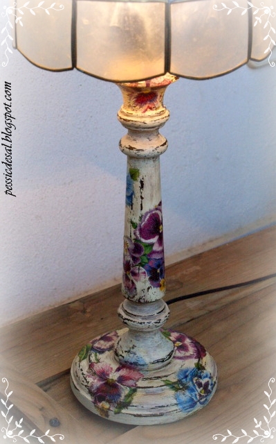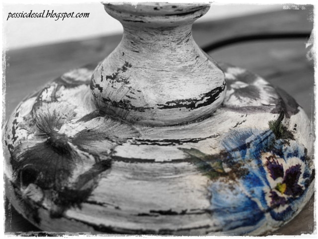 Gracias a una gran amiga, Almudena, que me dio el empujón necesario (y que me envió los botecitos de craquelador para que me animara)y ha tenido tanta paciencia con mi avasallamiento a preguntas.... el caso es que estos días, que necesitaba crear como siempre y no tenía ganas de coger papeles, me decidí a reutilizar un pie de lámpara que tenía ...y sin exagerar, desde hace por lo menos 10 años en el garaje!!!!si ya sé que no es muy normal, pero son cosas que pasan...jaja