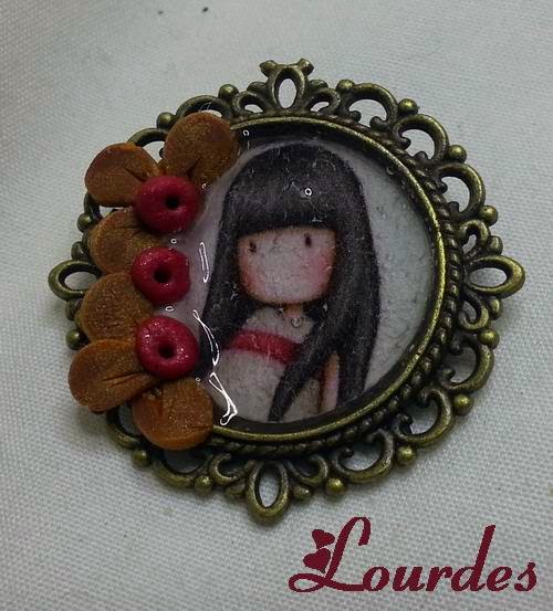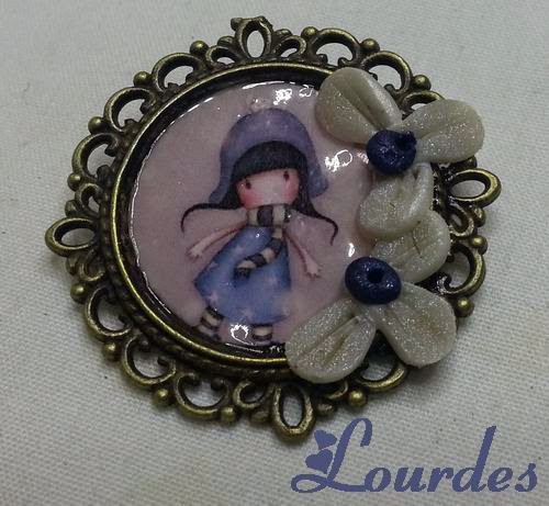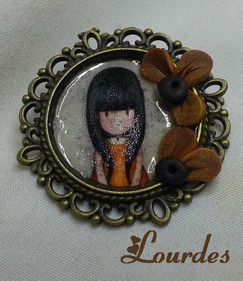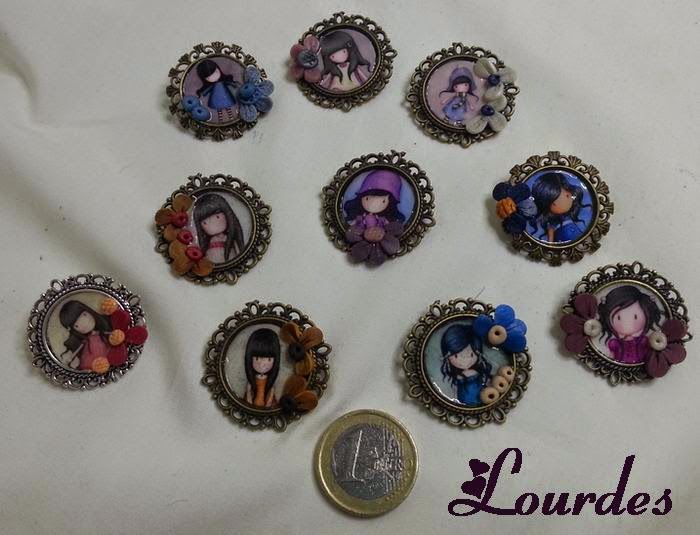 Broches de 4 centímetros de diámetro barnizados y con detalles en arcilla polimérica