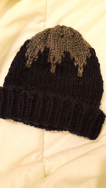 Este es un Gorrito para mi hijo, David, azul marino y gris, con picos. Le haré foto. Está guapisimo