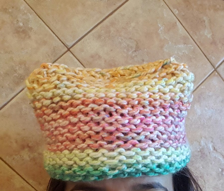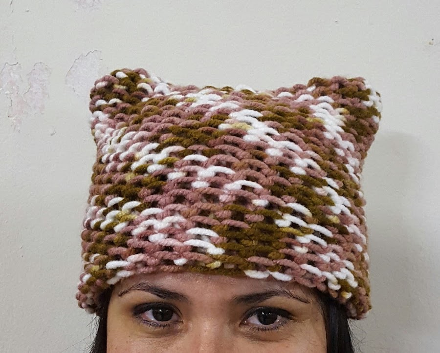 Otro precioso gorro, que le he enseñado ha hacer a mi amiga Laura, un bonito gorro con efecto de orejitasde gaita, muy simpático ,