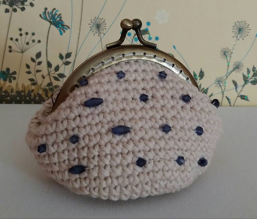 Como podéis ver, lo que es el diseño del monedero, es el modelo básico como yo le llamo. Para su decoración , le he puesto esas piedrecitas del mismo color. Ha quedado muy fino y bonito!.