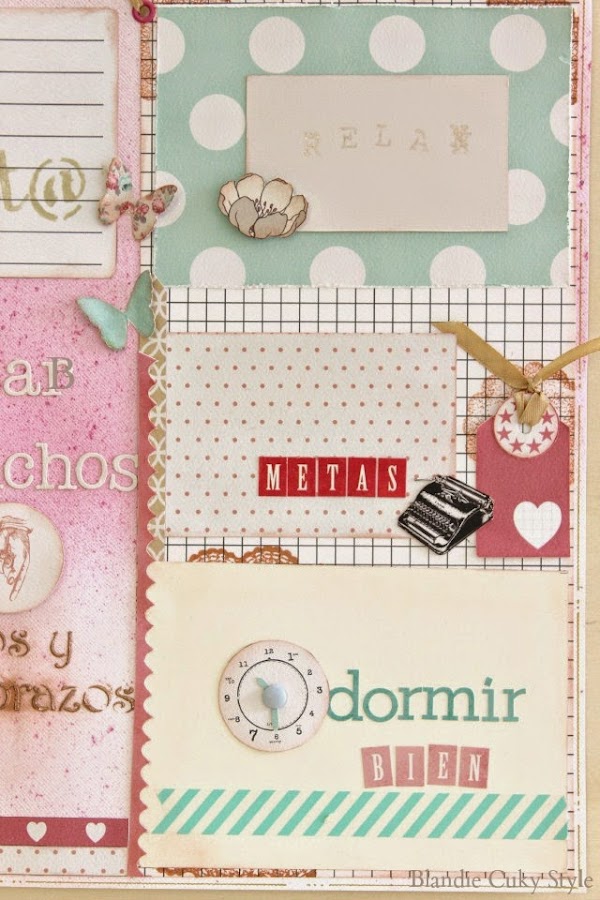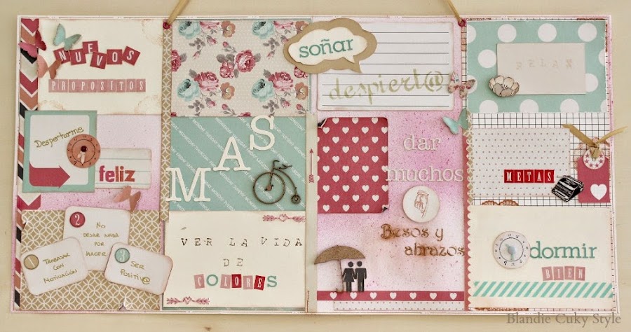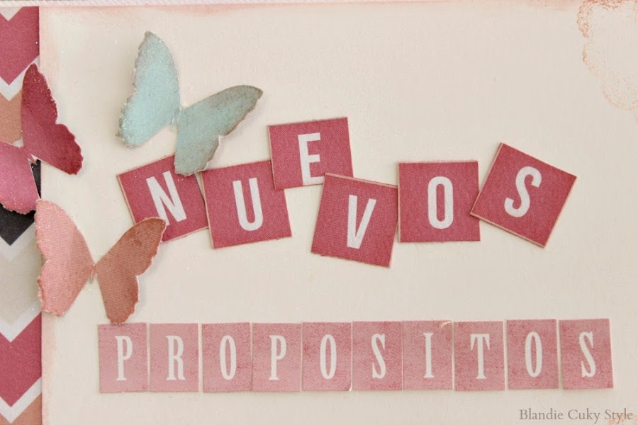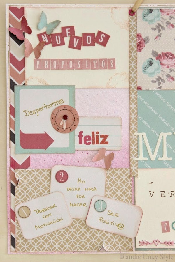 Por eso, no he dudado ni un momento en crear una doble página con materiales de scrapbook, donde he expresado todos los buenos propósitos que quiero recordar. Para no perder ni una pizca de la energía que necesito.