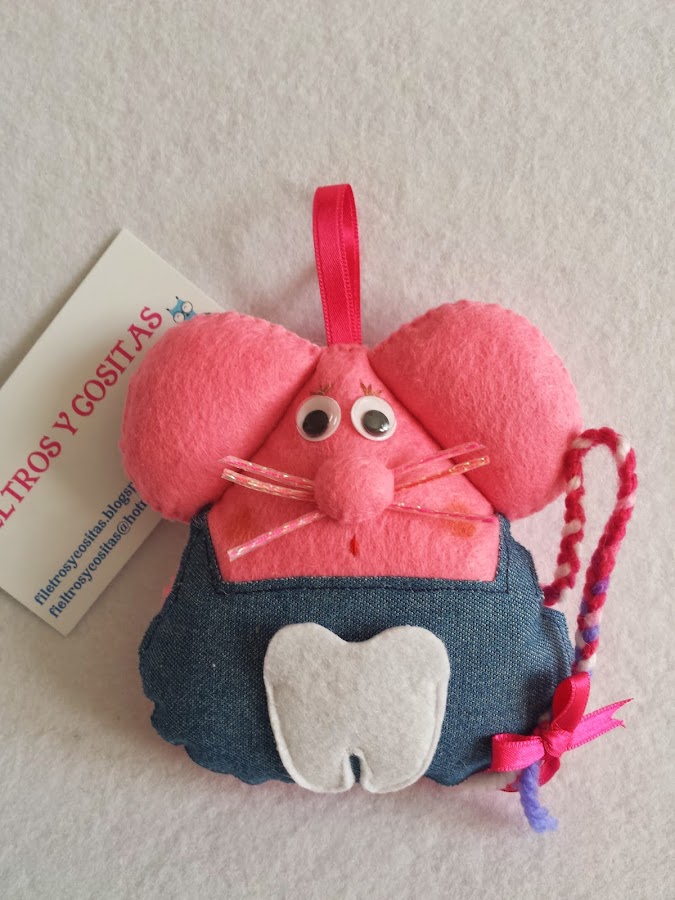 Hoy os enseño estos dos modelitos de Ratoncitos Guardadientes de fieltro...van vestido con un peto vaquero en el que esta la silueta de una muela para dejar allí el diente perdido....que os parece????