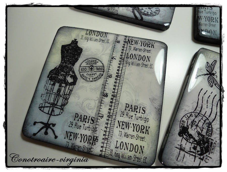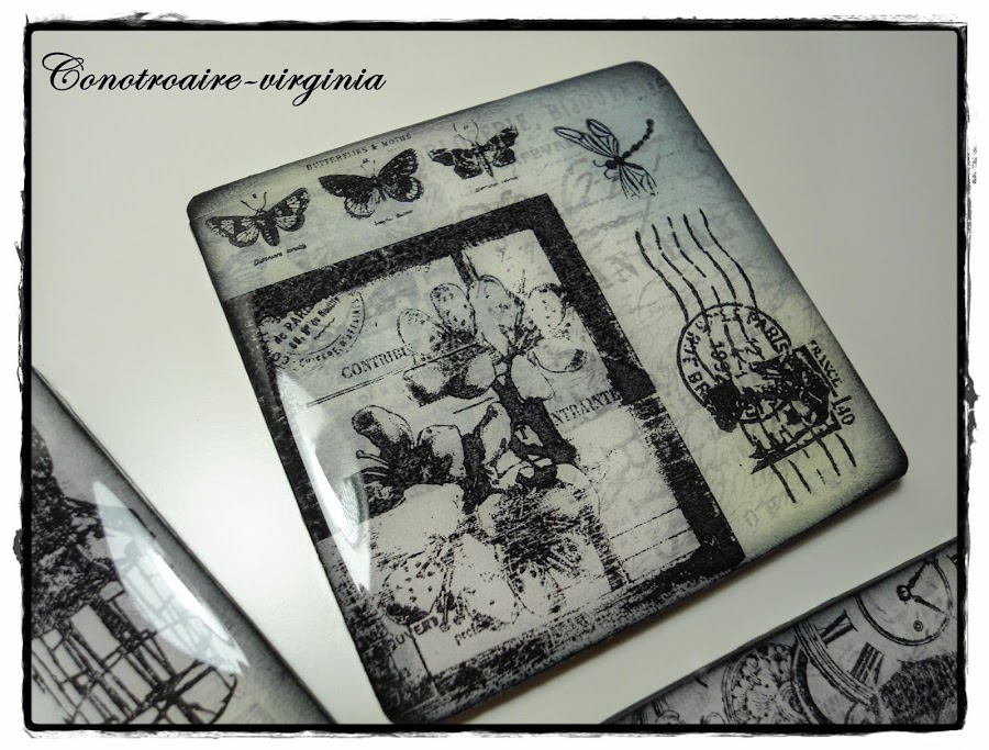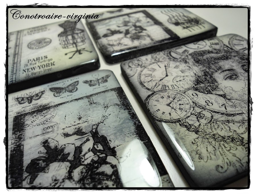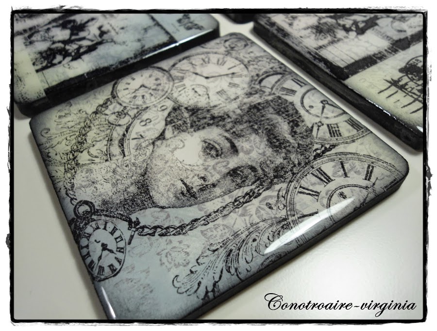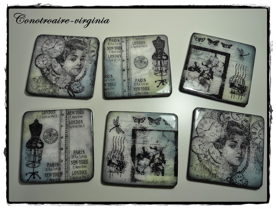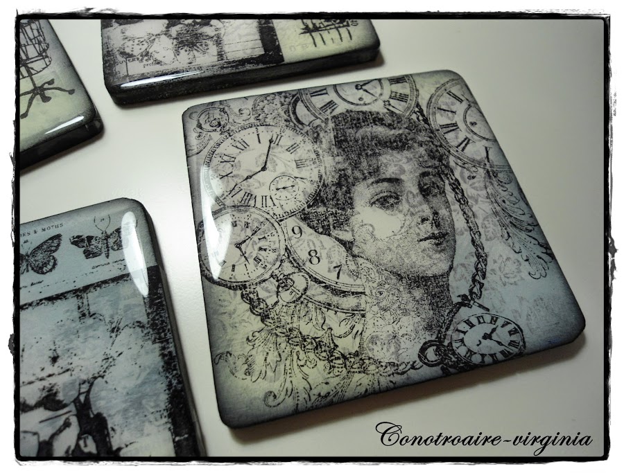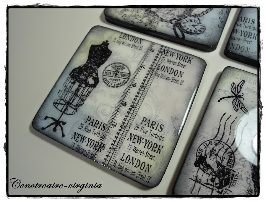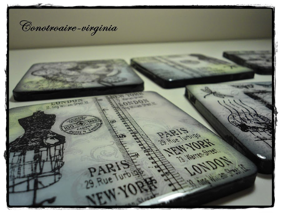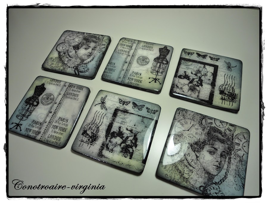 Estos son unos posavasos de madera que tenía por casa desde hace tiempo, y han sido mis victimas, ja,ja,ja para probar con ellos mis tintas y sellos.......