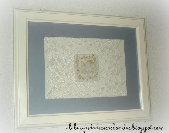 El viernes os enseñaré cómo enmarcar telas y labores, que ya veréis qué fácil es. Y seguiré pensando en lo siguiente que voy a cambiar en mi dormitorio, cámara en mano y con ojo muy crítico.... Como ya hice con el aparador del salón: