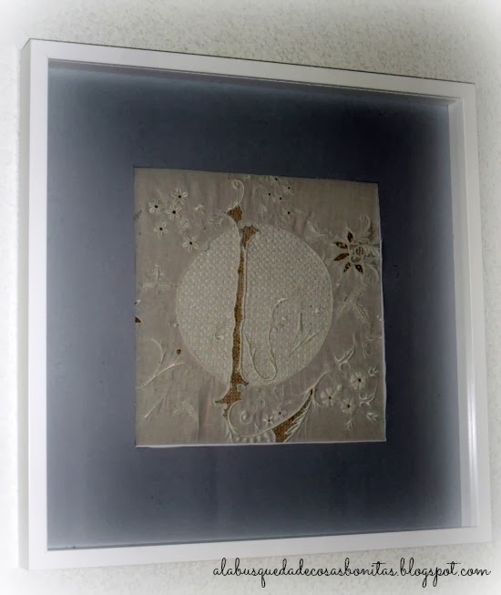 Y hace unos días, mientras intentaba que Celia se durmiera por la noche, se me iluminó la mente: ¿Qué tal enmarcar los bordados de las sábanas de mis bisabuelas?