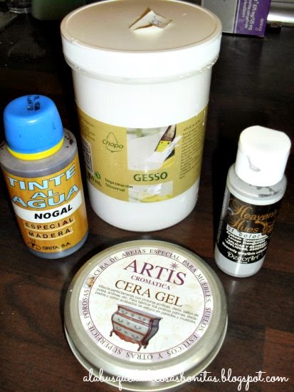 - Tinte de madera de color nogal (porque los apliques de mi baño son de ese color)