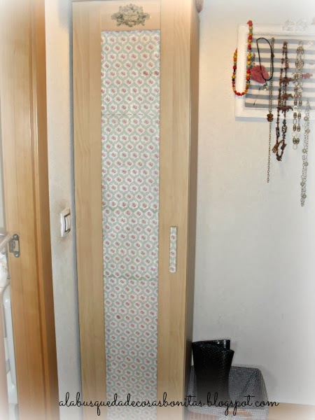 Es la flor que se repite en las servilletas que usé para darle otro aire al armario de la ropa blanca que está justo a la entrada de este cuarto de baño: