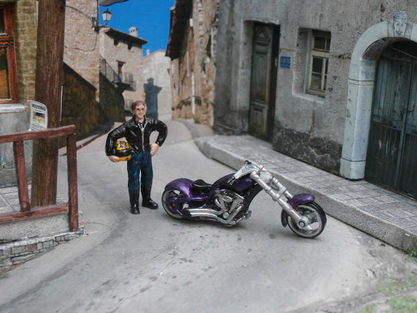 Otra motito Hotwheels, me gustaba el modelo, pero no estaba del todo bien logrado. Asi que la desarme por completo y lo modifique. Con clips y cables le construi la horquilla, luces y el porta equip ...