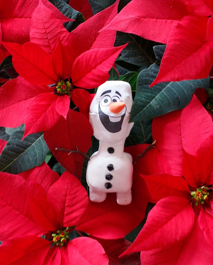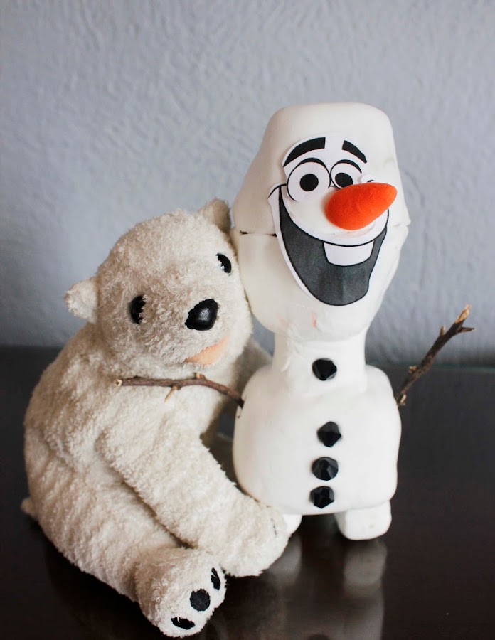 Por último, ¡pega la cabeza! Deja secar una hora y... listo! Ya tienes a Olaf de Frozen hecho por ti, listo para que tus peques se diviertan con él, es muy travieso...mira por donde anduvo: