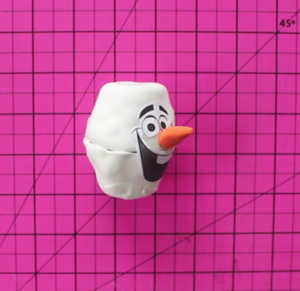 Una vez listos los dos conitos, únelos y pega el rostro de Olaf recortado con el pegamento blanco.