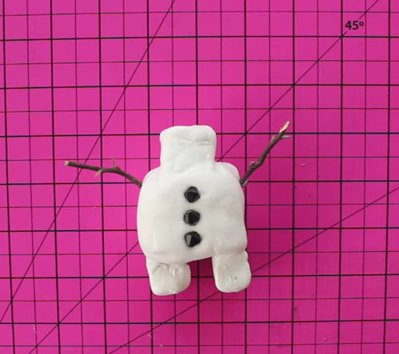 Coloca las cuentas negras a manera de botones e inserta los dos palitos para que sean sus brazos.