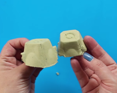 Con las tijeras, recorta con cuidado la huevera, necesitas dos conitos.