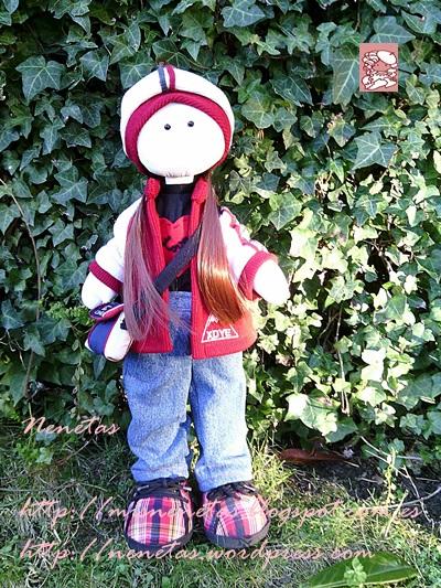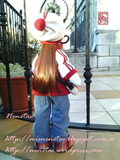 Hoy lleva unos vaqueros y una chamarrita roja con