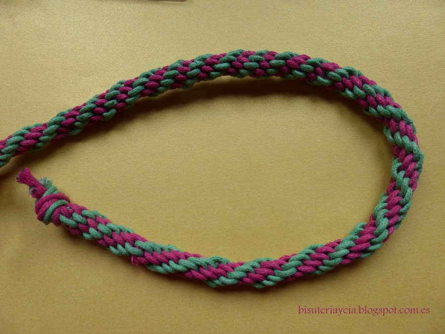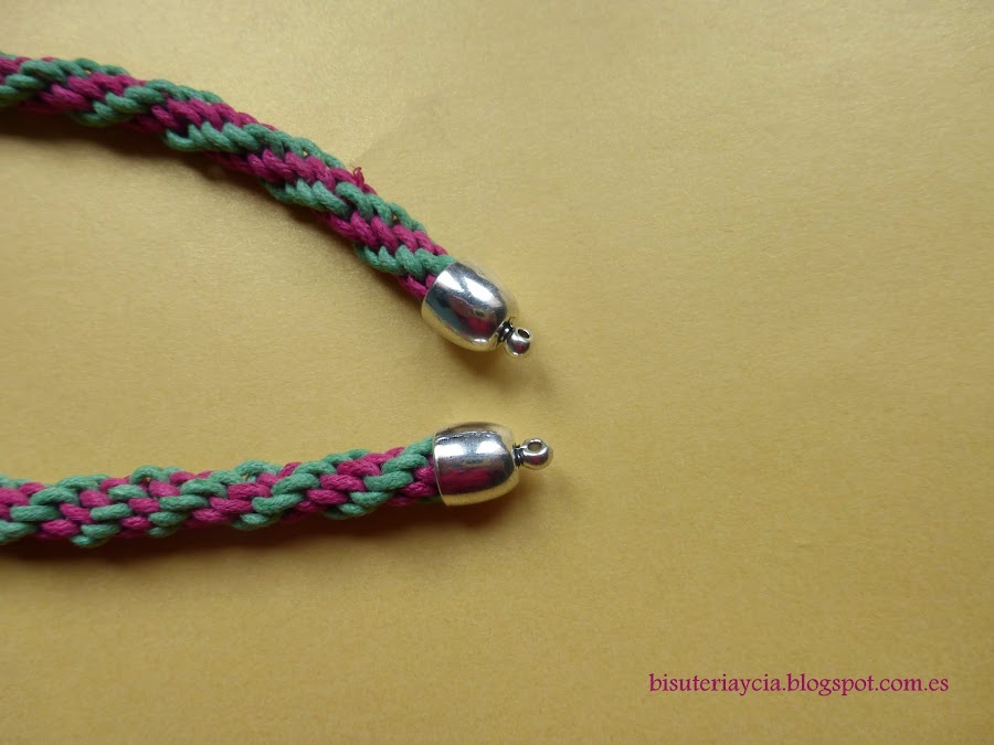 Empezaremos haciendo un cordón simple de Kumihimo, un vez hecho colocaremos los capuchones.