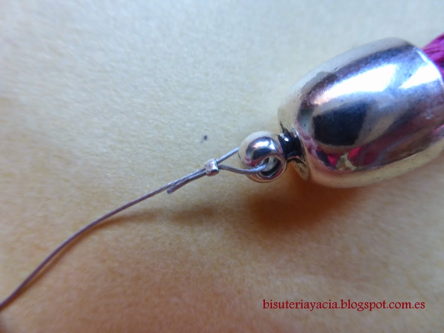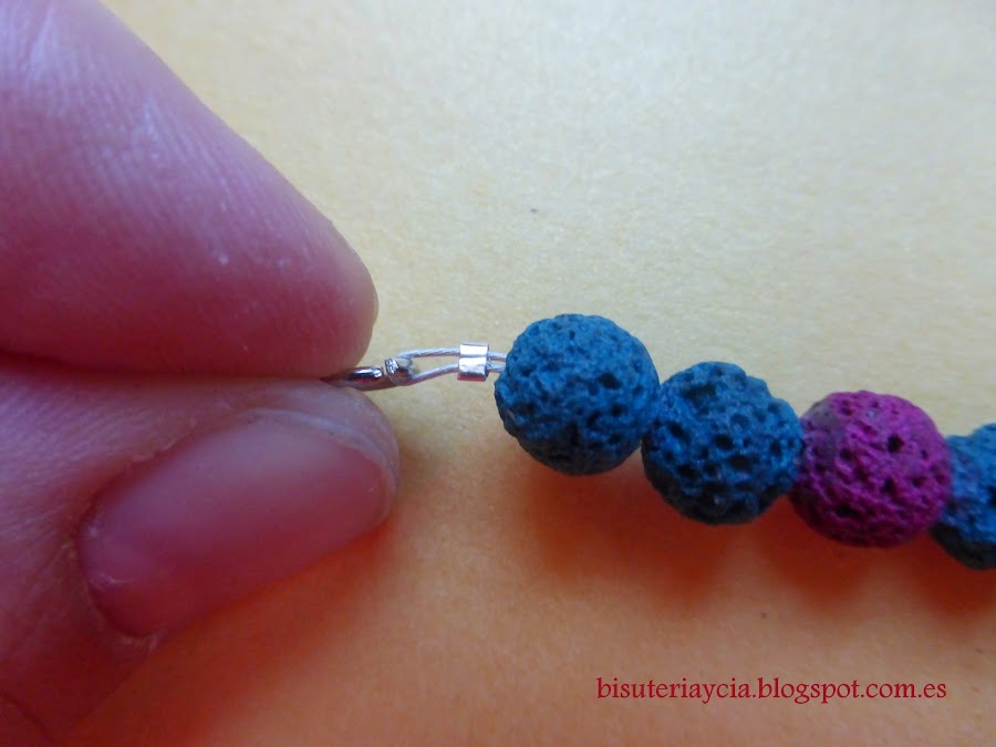 Enfilaremos por el alambre las piezas que hayamos escogido de la manera que mas nos guste, pero procurad que tanto la primera como la última tenga el interior lo suficientemente grande como para tapar la chafa.
