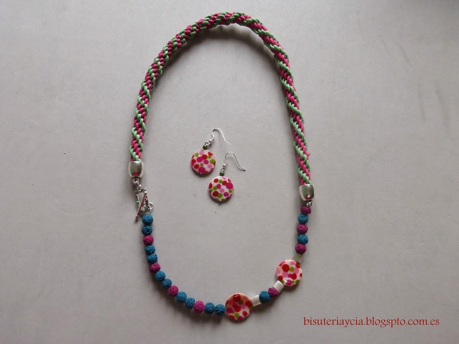 Ya tenemos nuestro collar acabado, como a mi me sobraban un par de piezas de nácar he hecho unos pendientes a juego.