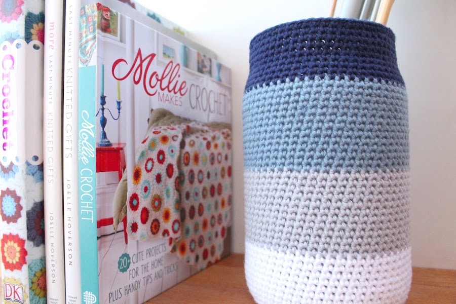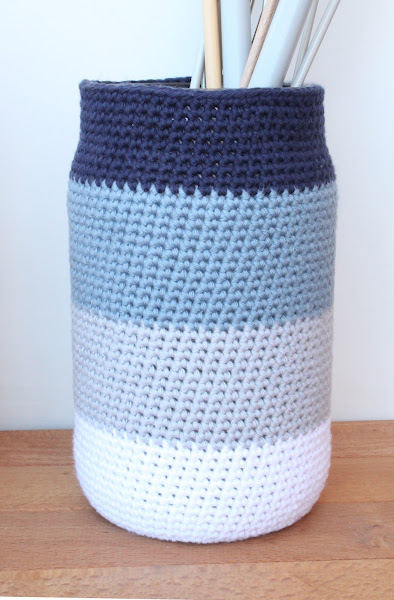 La inspiración me vino de la técnica ombre crochet utilizada en estas cestas de One Sheepish Girl y me pareció una forma perfecta de poner un poco de orden entre mis agujas de punto.