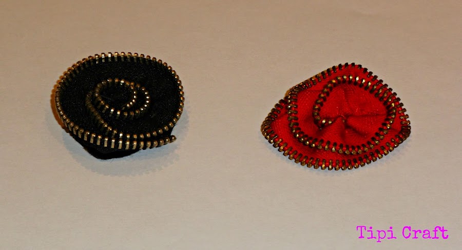 Yo me decidí por un broche de solapa sencillo ,hecho con una cremallera.