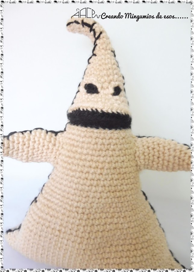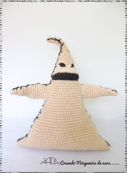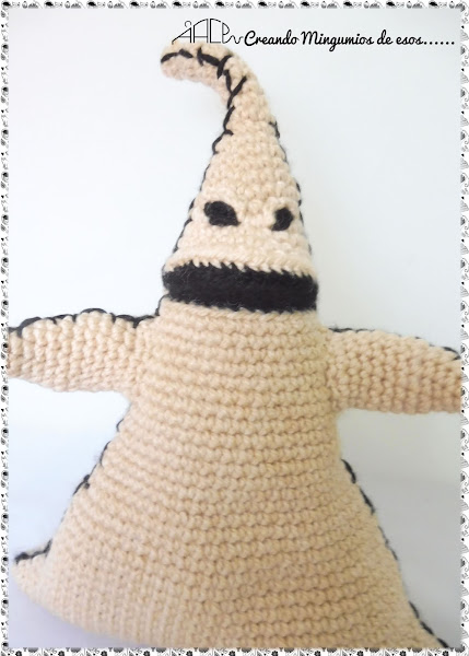 Un monstruo de película, el único miedo que da es lo rapido que toma cuerpo a medida que lo tejemos, es fácil de hacer, esta el patrón muy bien explicado, y el video ayuda muchisimo, espero os animéis tejerlo. El patrón lo encontras en http://martarusocrochet.blogspot.com/2015/01/oogie-boogie-amigurumi-patron-gratis.html.Patrón Oogie Boogie